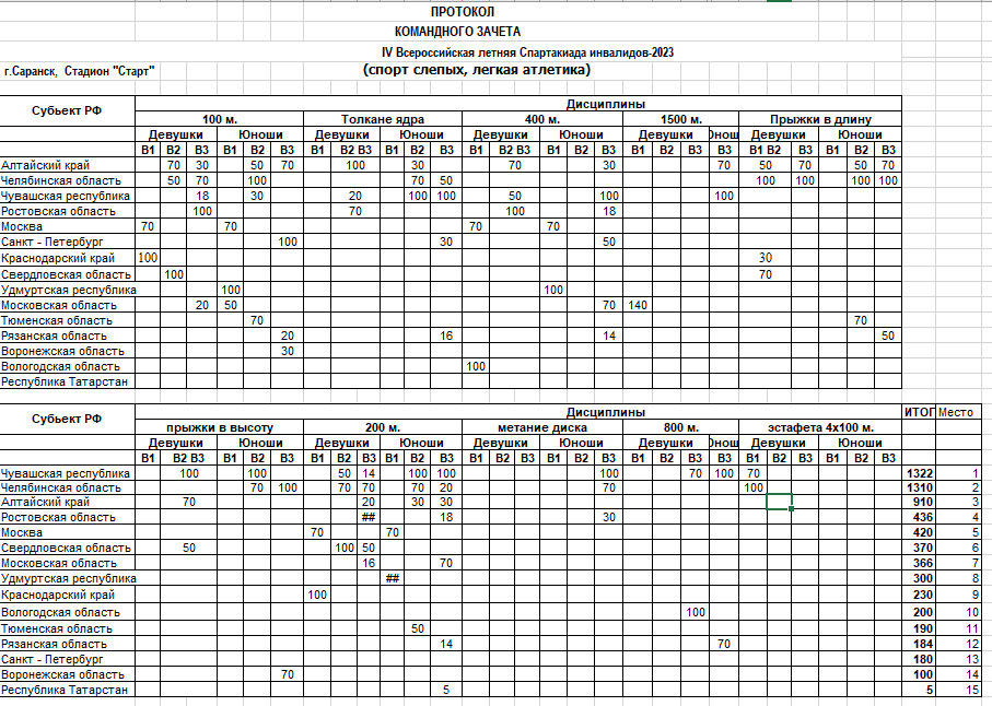 Команда легкоатлетов Алтайского края с нарушением зрения - бронзовый призёр IV Всероссийской летней спартакиады инвалидов