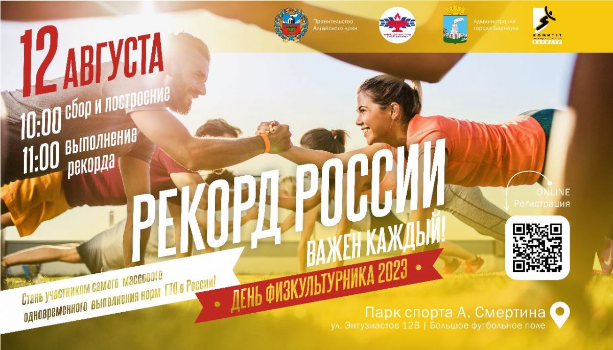 12 августа 2023 года, в День физкультурника, в Парке спорта Алексея Смертина (Барнаул, ул. Энтузиастов, 12-в) запланировано установление рекорда России по одновременному выполнению норм ГТО (отжимание).