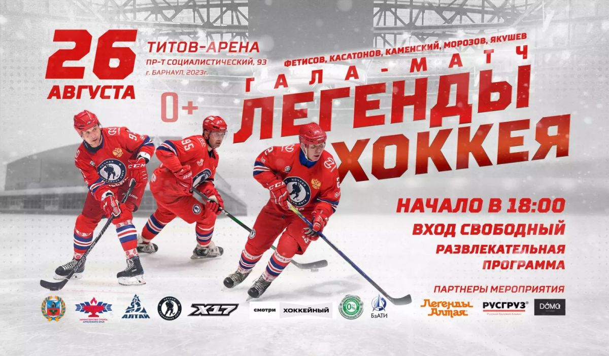 26 августа в Барнауле состоится Гала-матч звёзд советского и российского хоккея