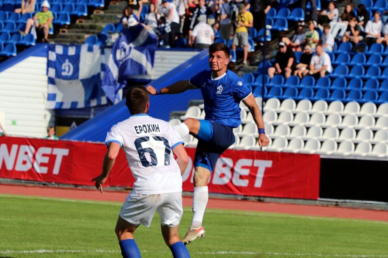 Игра получилась напряженной и бескомпромиссной. В первом тайме команды показывали динамичную игру, но выдержать такой темп на протяжении 45-и минут не смогли. Видимо, из-за жары. Игроки «Новосибирска» смотрелись интереснее динамовцев, но у них хромала реализация голевых моментов. А игроки «Динамо», напротив, воспользовались своими возможностями сполна! На перерыв хозяева ушли ведя в счёте. На 36-й минуте Артём Яркин оказался первым на добивании - 1:0.