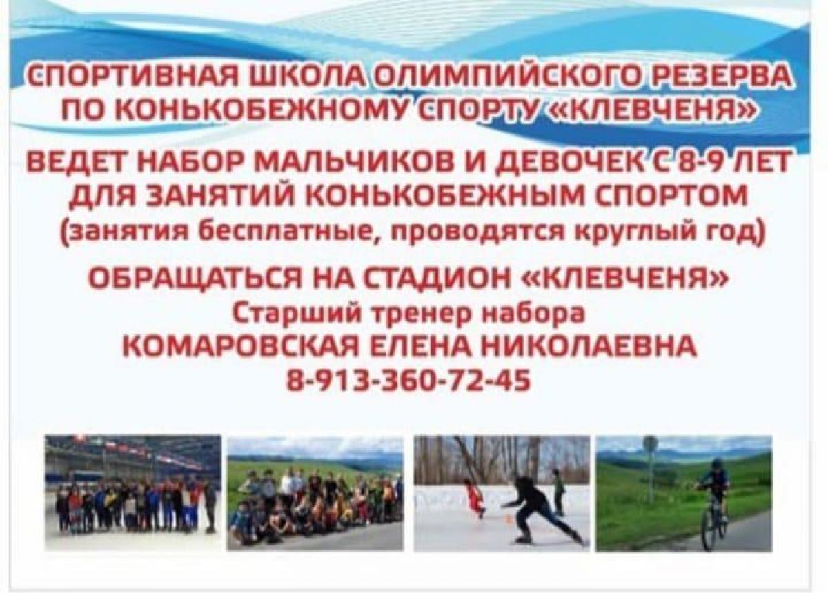 Спортивная школа олимпийского резерва «Клевченя» приглашает мальчиков и девочек в возрасте 8−9 лет для занятий конькобежным спортом.