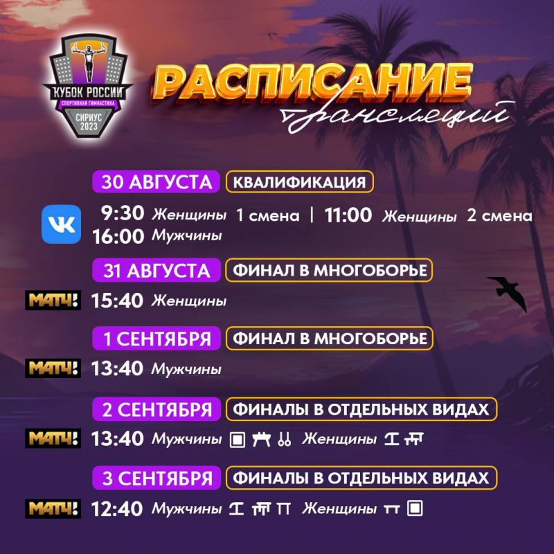 Трансляции соревнований организованы на сайте Федерации спортивной гимнастики России и в эфире холдинга «Матч ТВ».