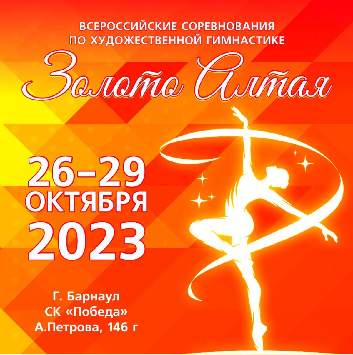 С 26 по 29 октября в Барнауле на базе спортивного комплекса «Победа» состоятся первые в истории Всероссийские соревнования по художественной гимнастике «Золотой Алтай».