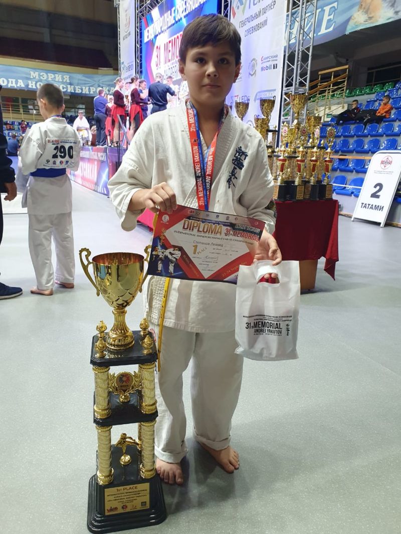 1 место - Степанов Леонид, мальчики 10−11 лет - весовая категория 45 кг,