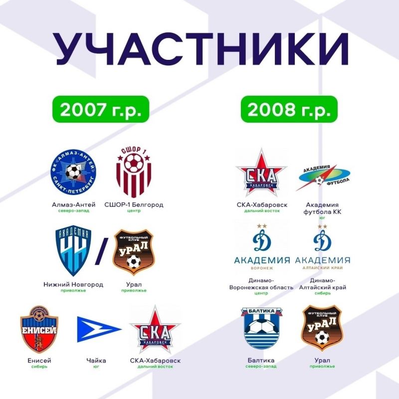 2007 год рождения на турнире представят «Алмаз-Антей», «СКА-Хабаровск», СШОР № 1 Белгород, «Енисей» и «Чайка». Последний участник определится в ЮФЛ Приволжье в ближайшие дни.