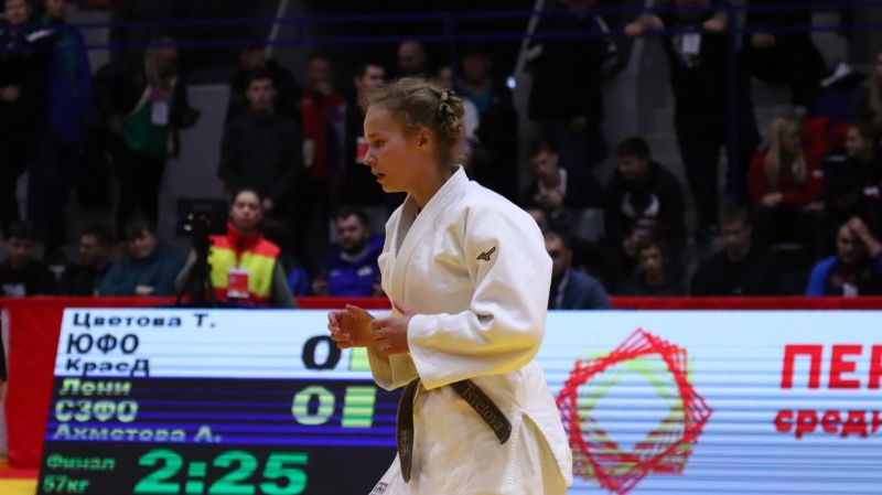 Открыли финальный блок схватки представительниц прекрасной половины человечества в дивизионе до 57 кг. В поединке за «золото» алтайской чеканки встретились Татиана ЦВЕТОВА (ЮФО) и Амина Ахметова (СЗФО). Сильнее в этом противостоянии оказалась воспитанница туапсинской школы дзюдо: Цветова в «голден скор» смогла уложить соперницу на татами и заработать решающую оценку.