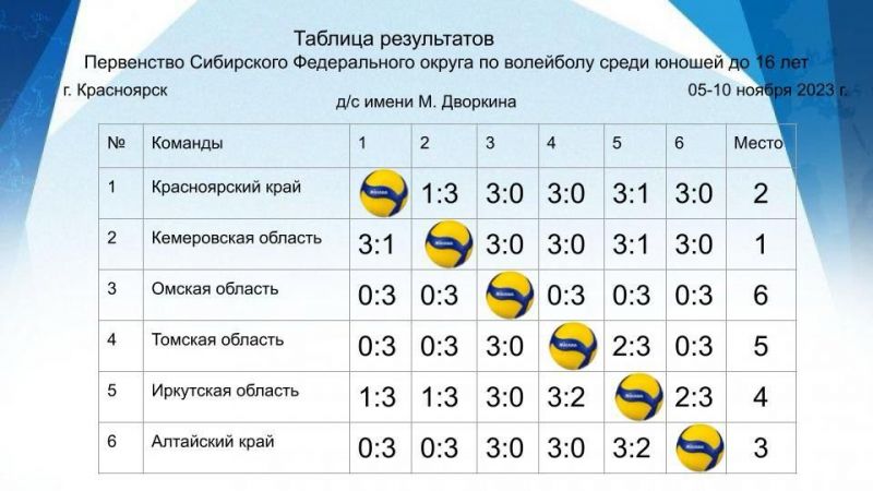10 ноября в Красноярске завершилось первенство Сибирского федерального округа по волейболу среди юношей 2009−2010 годов рождения.