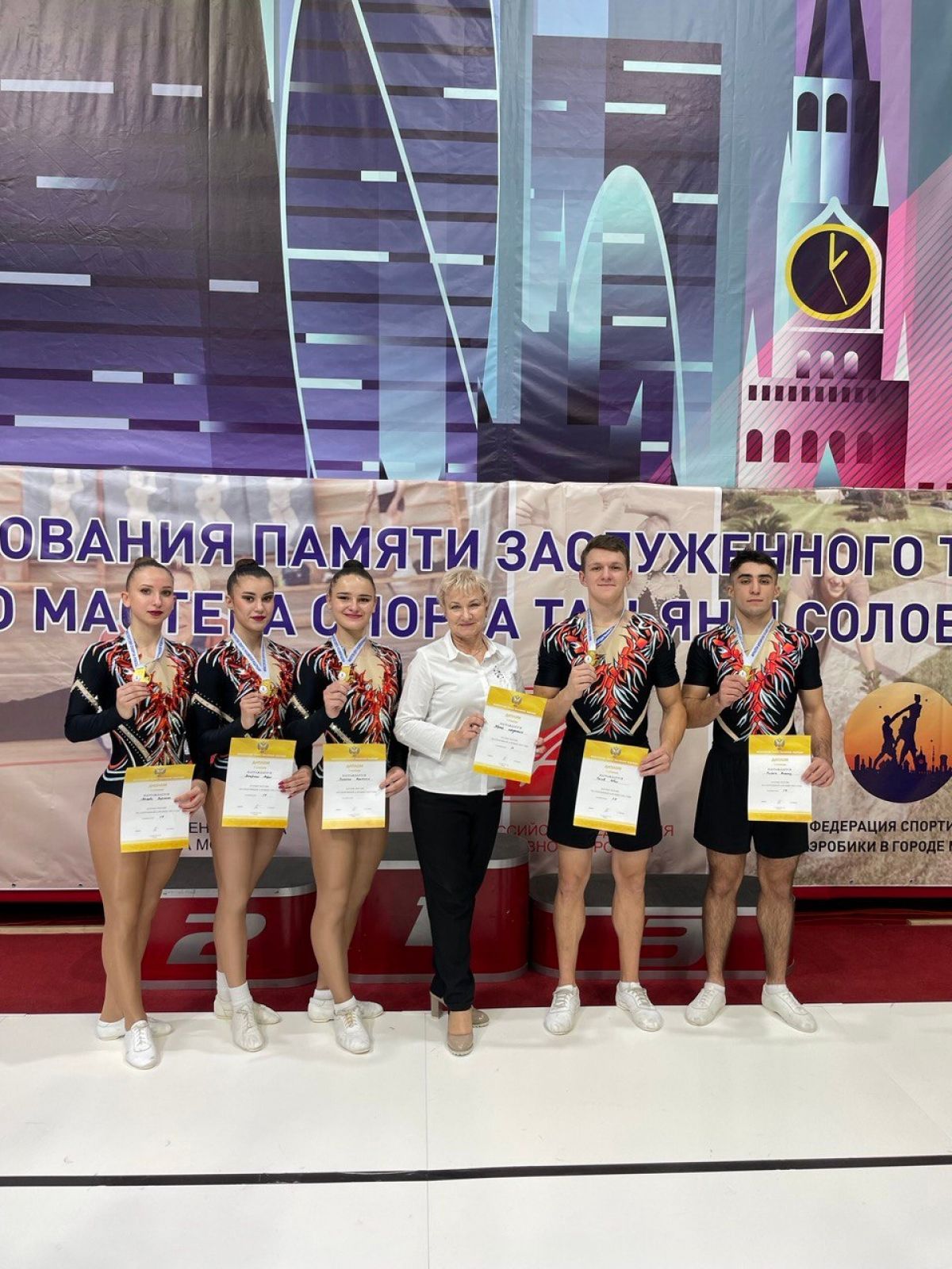 Наши спортсмены, выступавшие под руководством главного тренера сборной региона по спортивной аэробике Натальи Грининой, блестяще показали себя в дисциплине «Группа-5» и стали победителями соревнований.