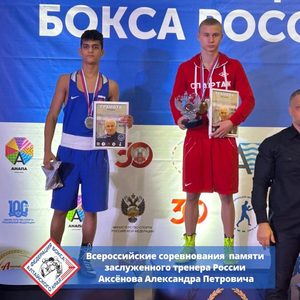 26 ноября в Анапе прошли финальные поединки Всероссийских соревнований по боксу среди юношей (13−14, 15−16 лет) памяти заслуженного тренера России Александра Аксёнова.