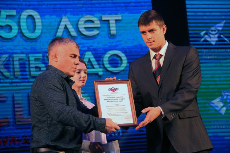 Было сказано много тёплых слов. Заместитель председателя Правительства Алтайского края Денис Губин вручил директору КСШОР Сергею Волкову благодарность губернатора региона за большой вклад в развитие физической культуры и спорта. Различными ведомственными наградами по линии Минспорта были отмечены и сотрудники спортшколы.