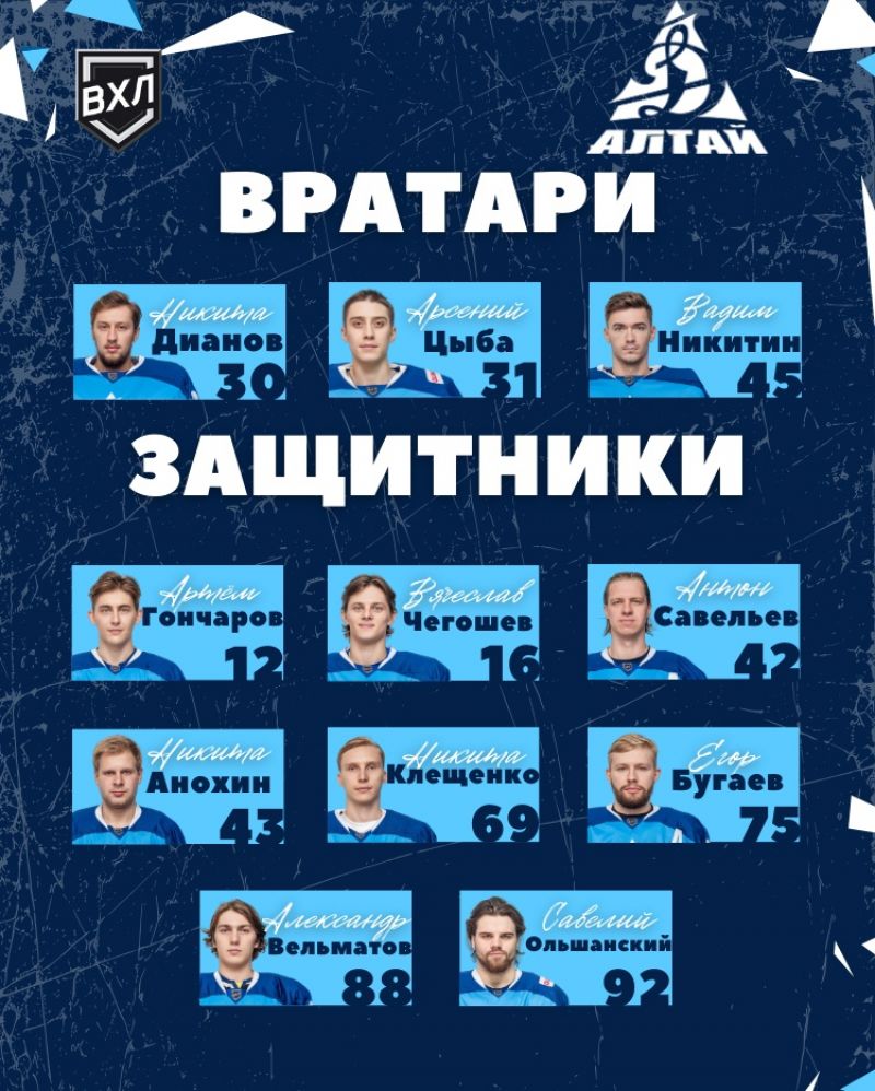 защитники: Артём Гончаров, Вячеслав Чегошев, Антон Савельев (А), Никита Анохин, Никита Клещенко, Егор Бугаев, Александр Вельматов, Савелий Ольшанский;