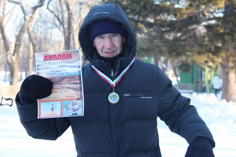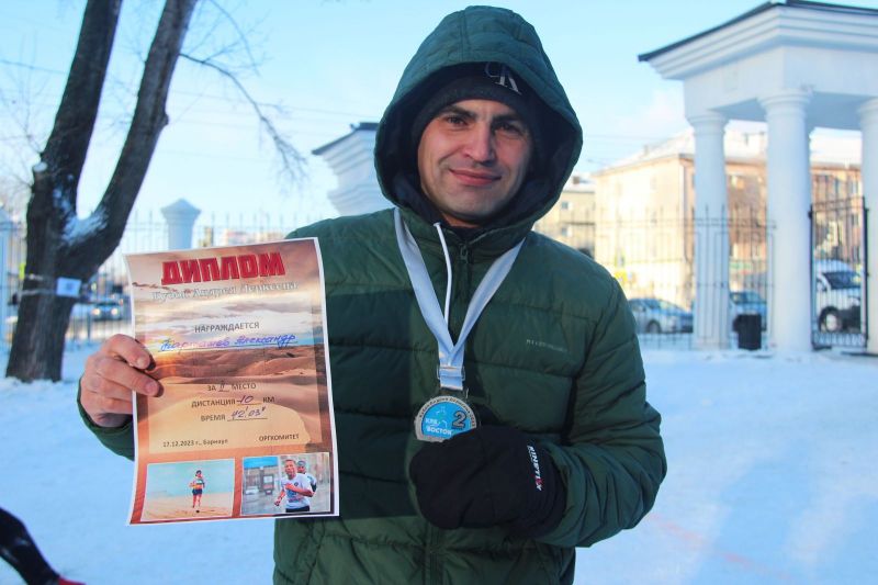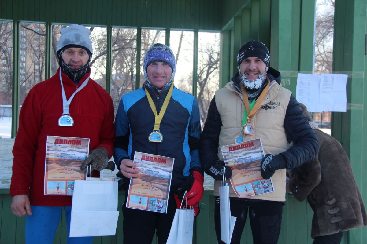 Первым на финиш полумарафона, заиндевевший, как и все другие участники бега, прибежал мастер спорта Николай Григоров. Вторым на дистанции 21,1 км финишировал Дмитрий Сморода, третьим - Артём Иванов.