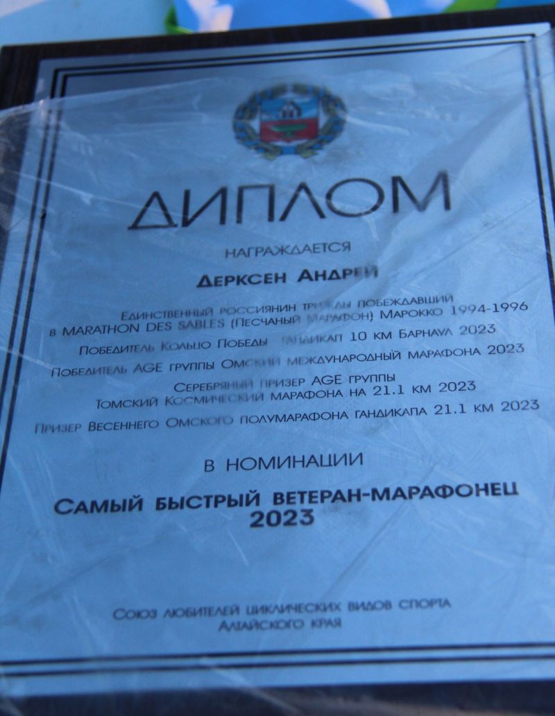 О спортивных героях (да и не только спортивных) забывают быстро, если не напоминать. Организаторы соревнований из клуба любителей бега «Восток-Трейл» прекрасно это знают. Поэтому на построении перед началом забегов на 10 км и 21,1 км руководитель «Востока-Трейла» Александр Богумил не поленился перечислить все некогда громкие пробеги Андрея Дерксена, ещё раз подчеркнув, что он единственный россиянин, трижды побеждавший в 1990-х годах в одной из самых сложных и жестких беговых многодневок в мире Marathon des Sables - марафоне в песках пустыни Сахара. Где Сибирь с морозами и где Сахара с жарой!