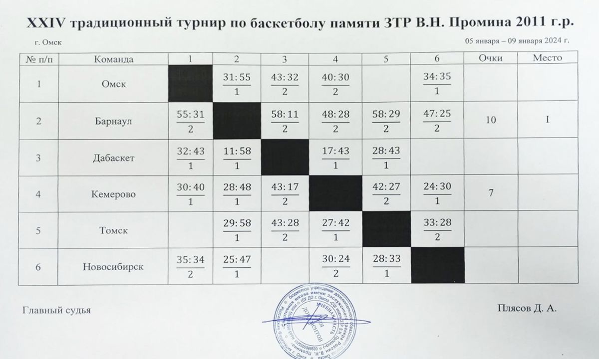 В Омске с 5 по 9 января прошёл «XXIV традиционный турнир по баскетболу памяти заслуженного тренера России Виктора Николаевича Промина» среди команд спортсменов 2011 года рождения.