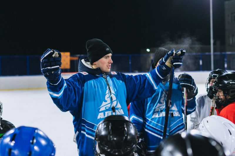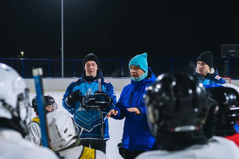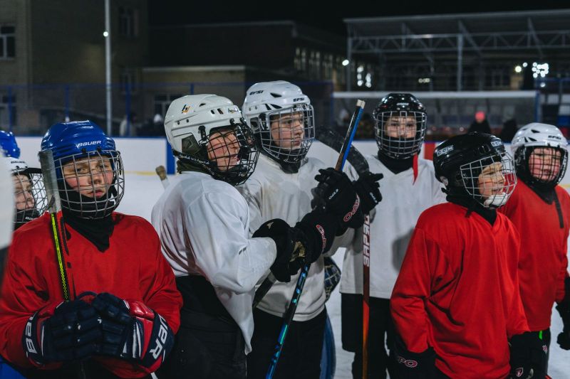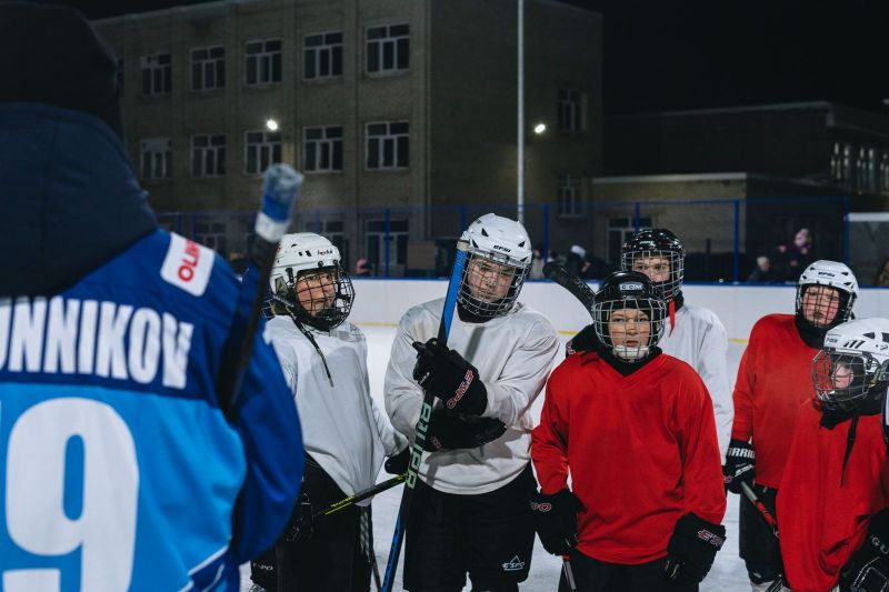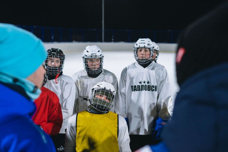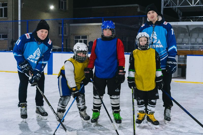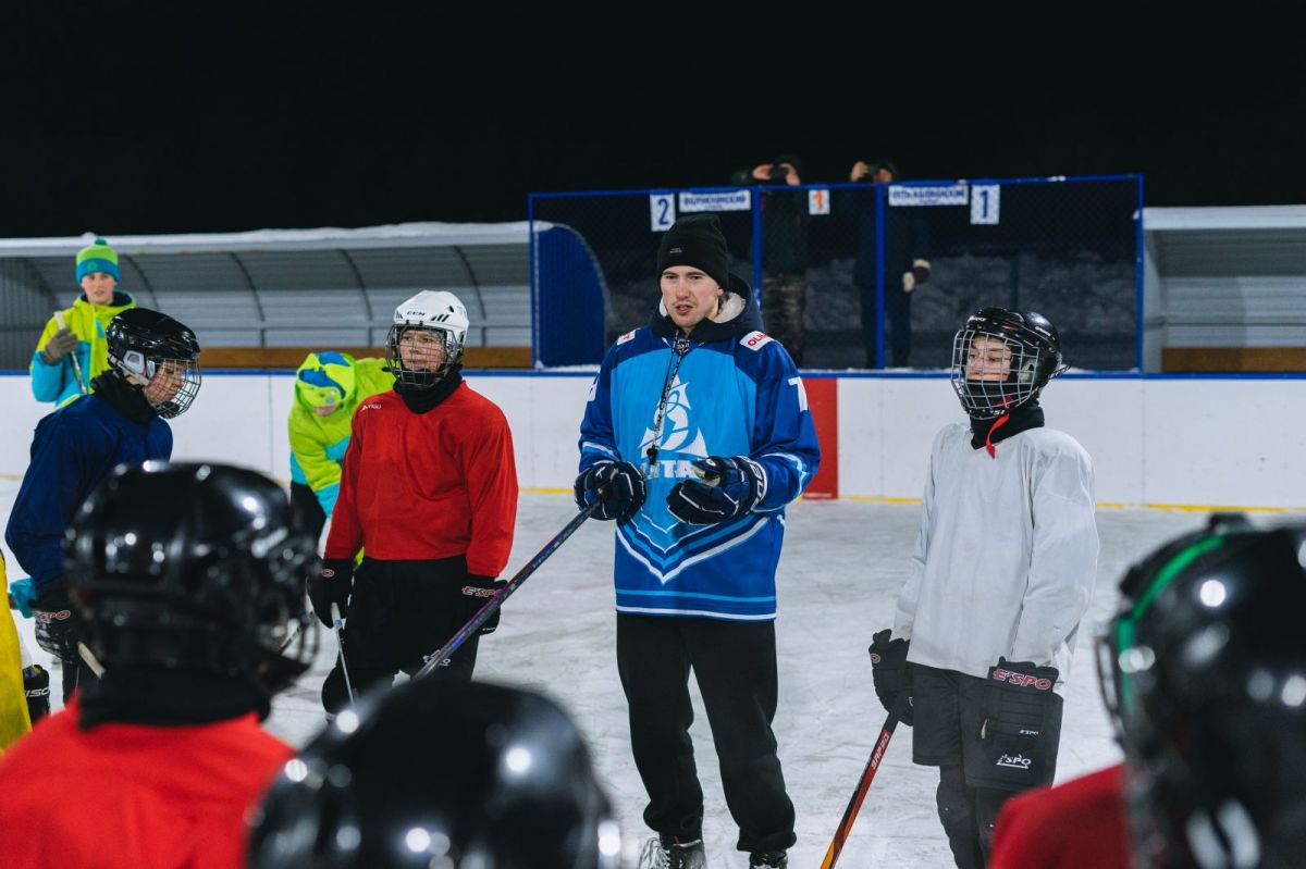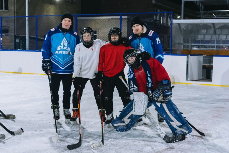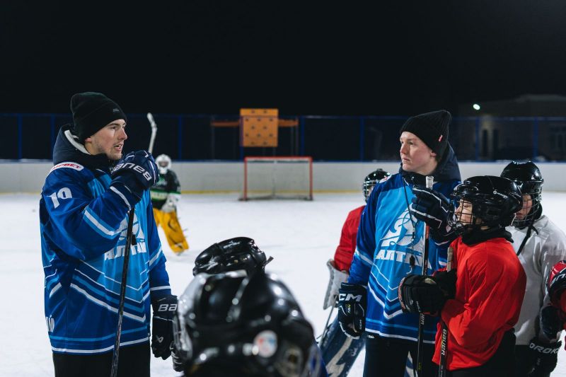 И там, и тут передают. Игроки «Динамо-Алтай» провели мастер-класс для юных хоккеистов из Павловска