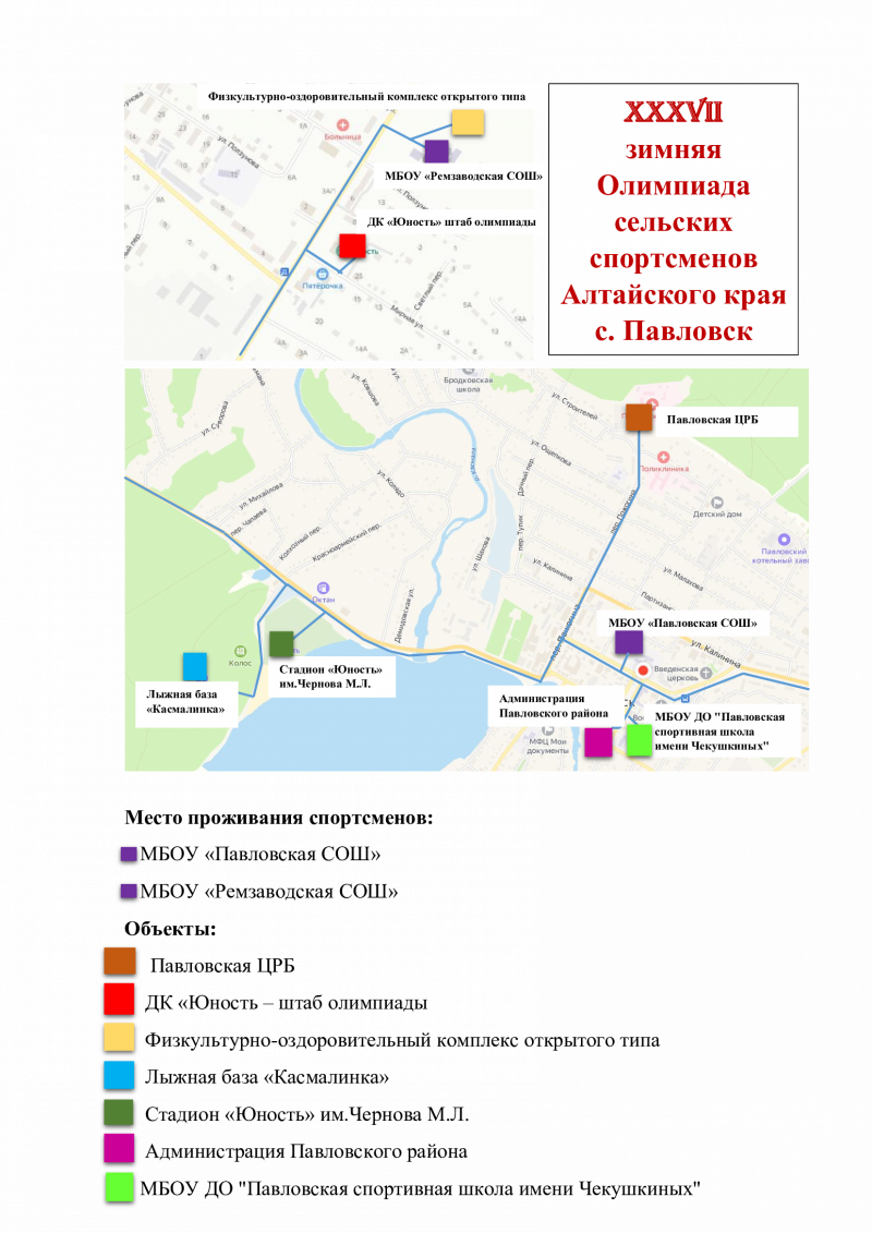 Схема объектов XXXVII краевой зимней олимпиады сельских спортсменов в Павловске (pdf, 0,5 Мб)