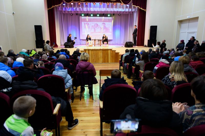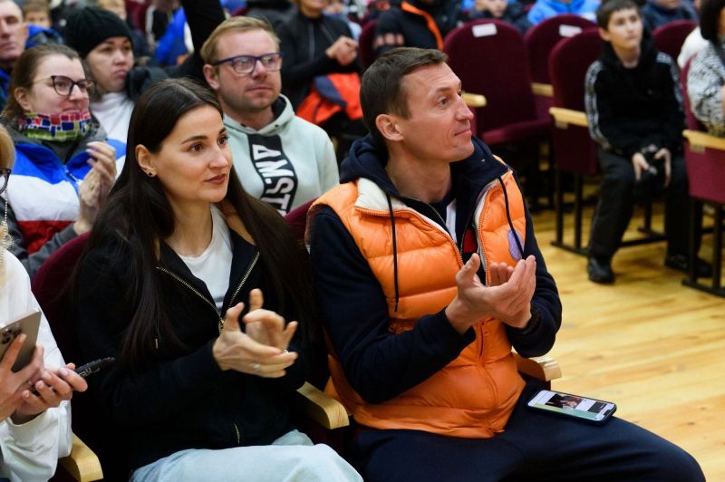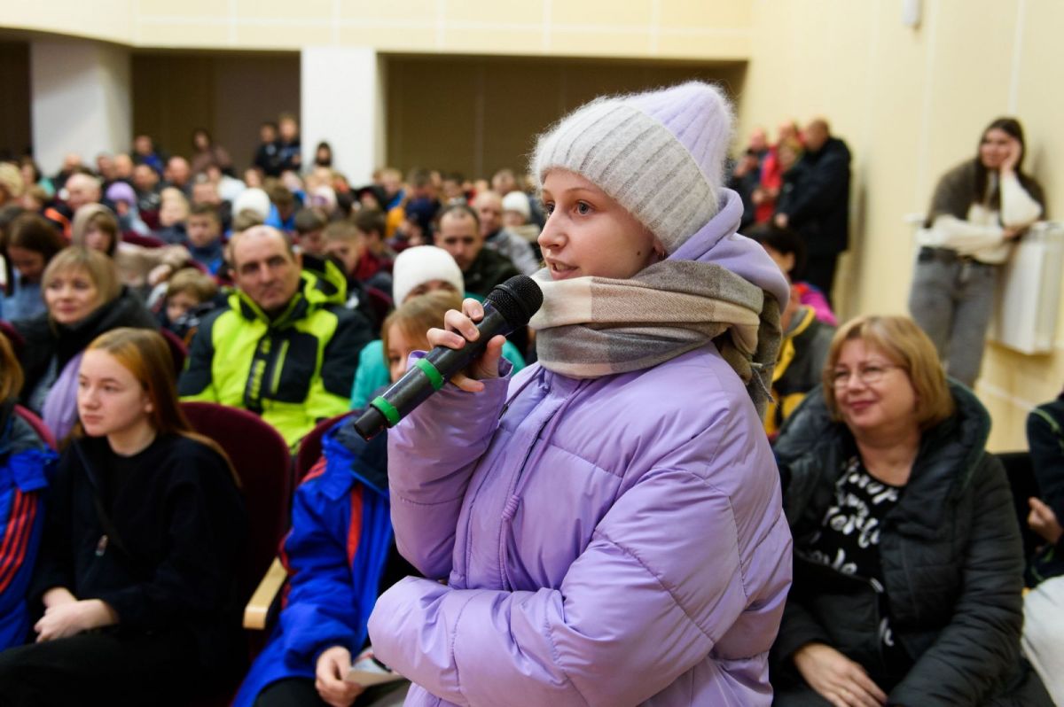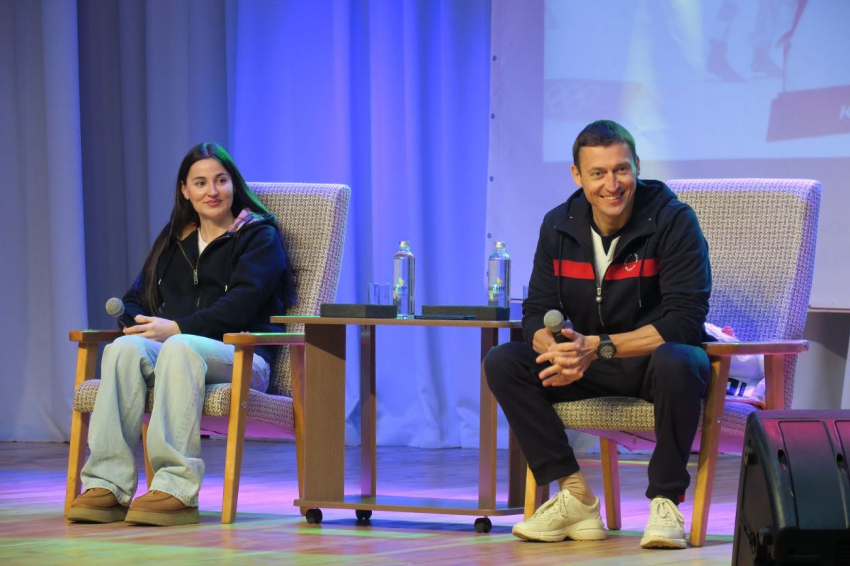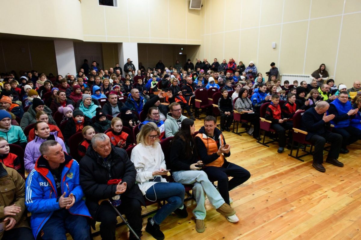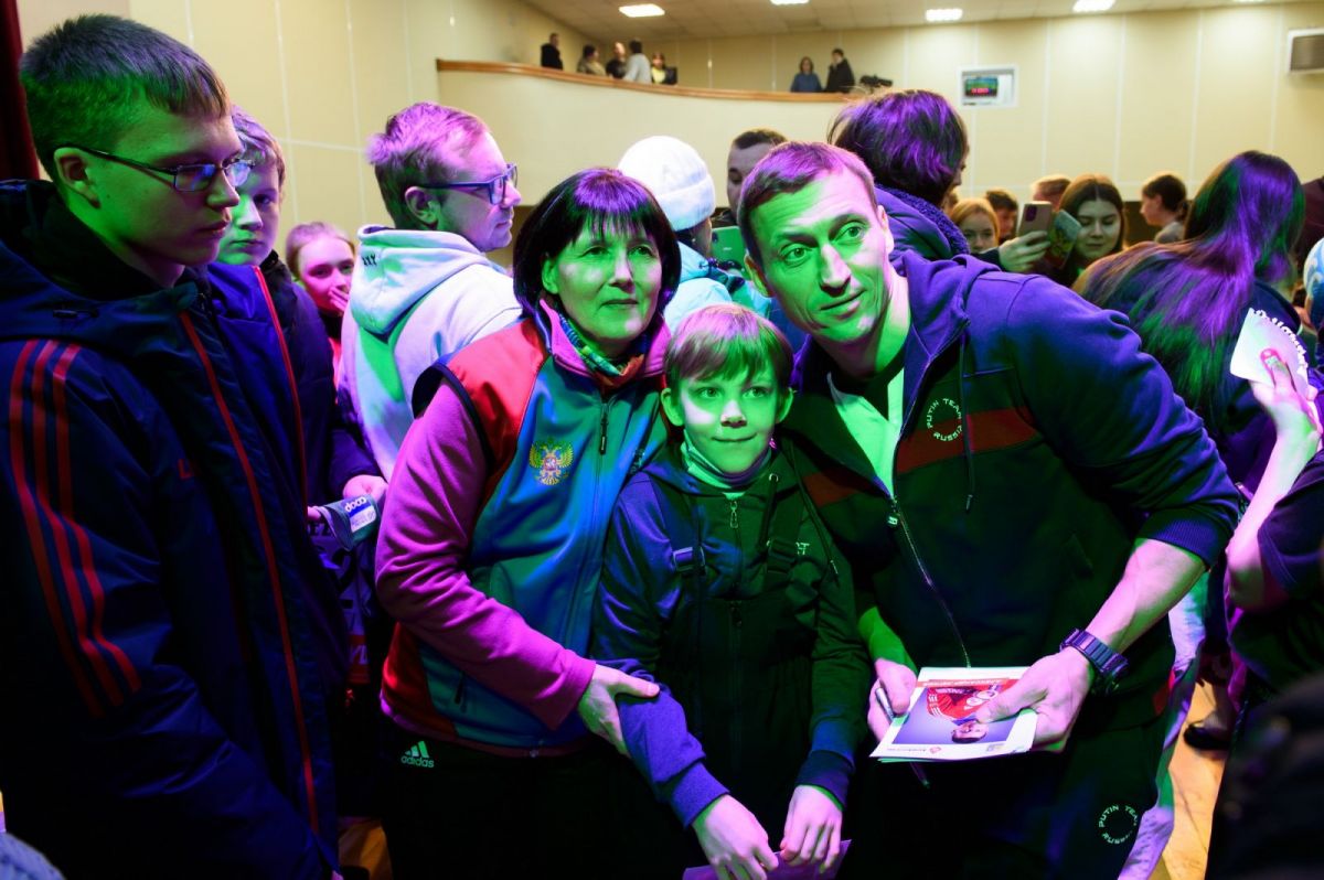 Но сначала был «прогрев» - почти полтора часа Юлия Ступак и Александр Легков отвечали на вопросы собравшихся в актовом зале центрального Дома культуры. Вопросы задавали все: дети, родители, тренеры, взрослые спортсмены-любители.