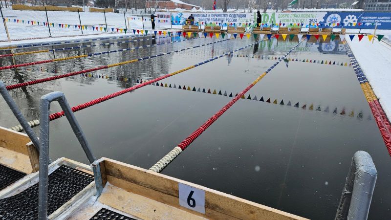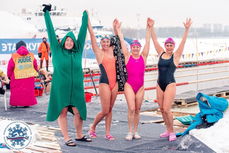 Соревнования проходили при температуре воздуха минус 5 градусов и температуры воды около 0 градусов.