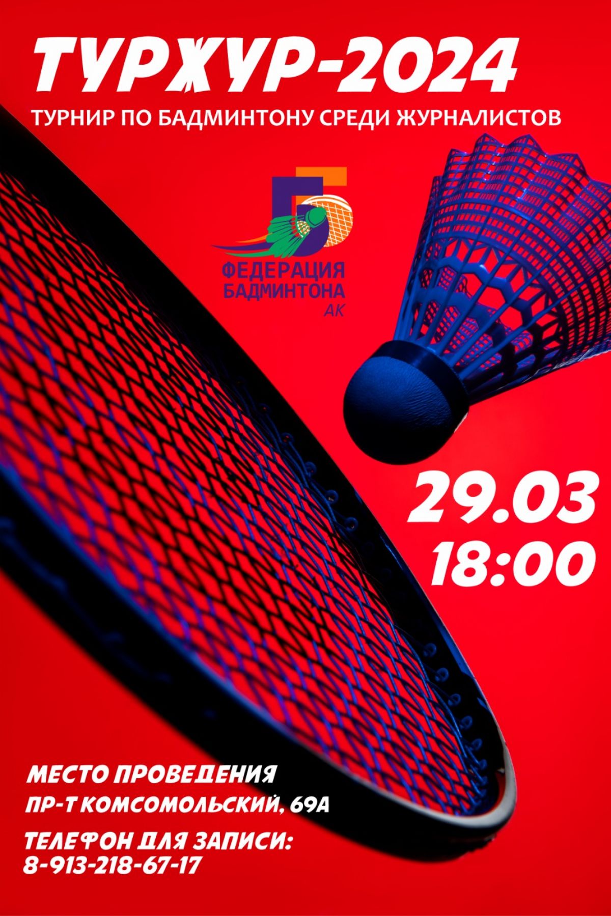 Представители СМИ приглашаются 29 марта на турнир по бадминтону