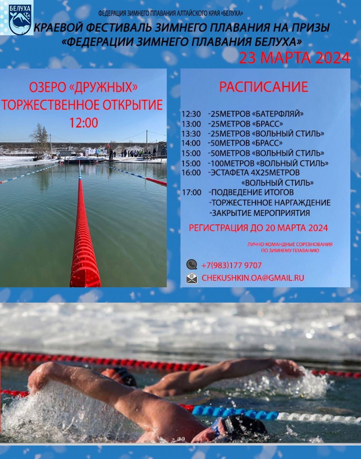 23 марта. Барнаул. Озеро Пионерское. Краевой фестиваль на призы Федерации зимнего плавания «Белуха»
