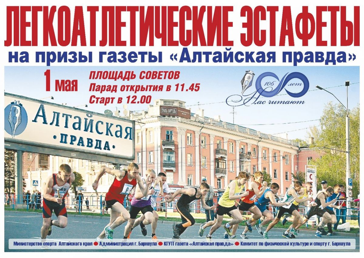 В традиционных легкоатлетических эстафетах на призы газеты «Алтайская правда» примут участие команды школьных, студенческих и трудовых коллективов, дети с ограниченными возможностями здоровья.