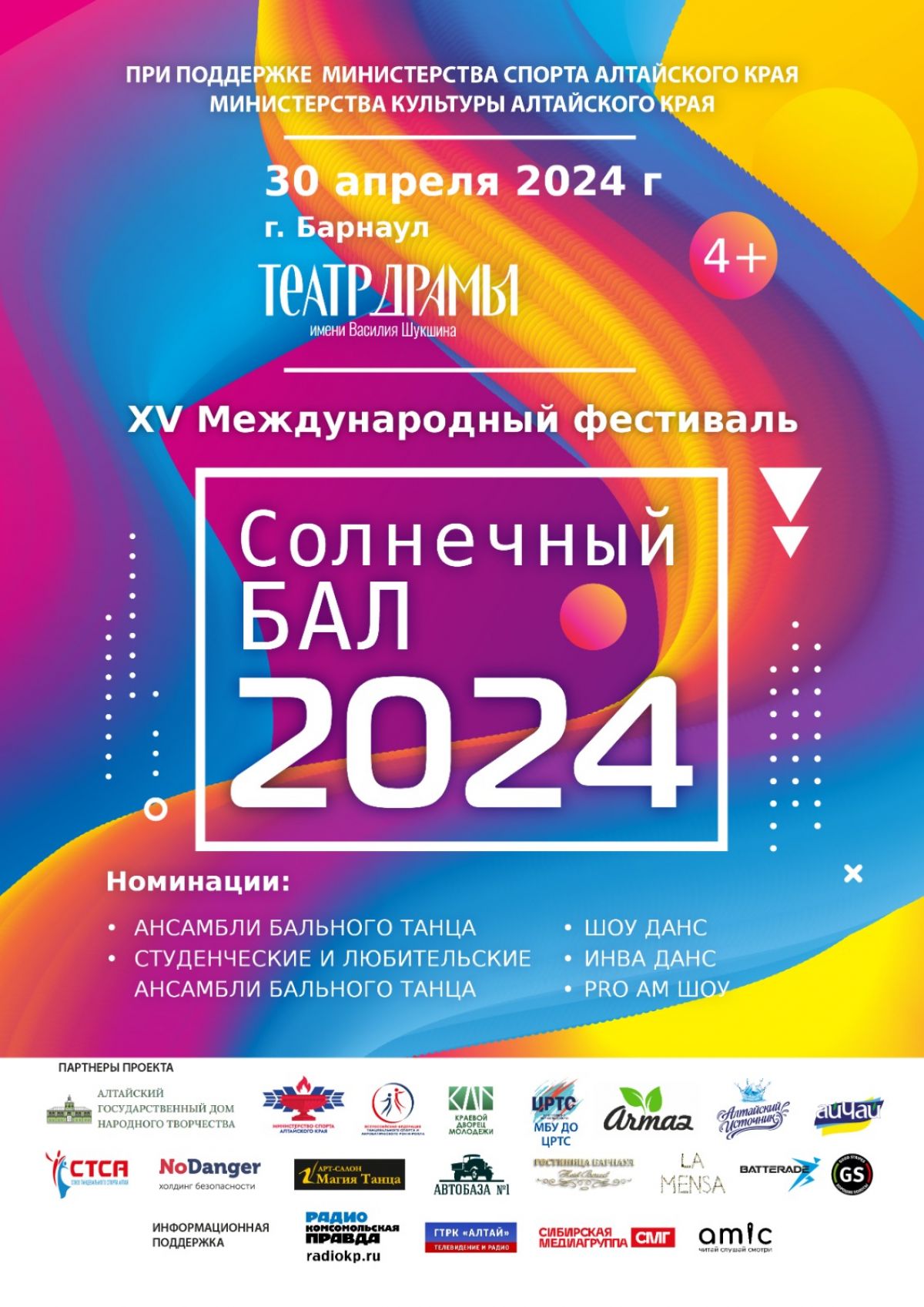При поддержке региональных министерств спорта и культуры в Барнауле 30 апреля пройдёт XV Международный фестиваль «Солнечный Бал 2024»