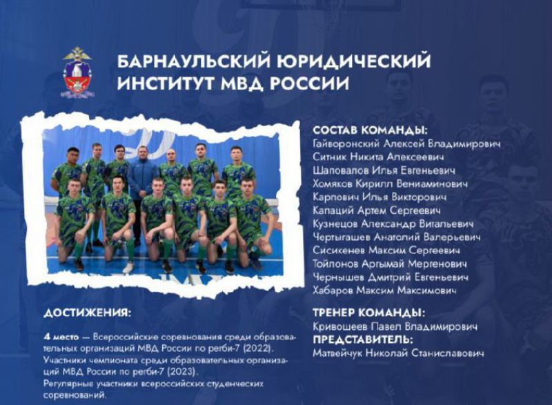 Команда Барнаульского юридического института сегодня стартует в чемпионате образовательных вузов МВД России по регби-7