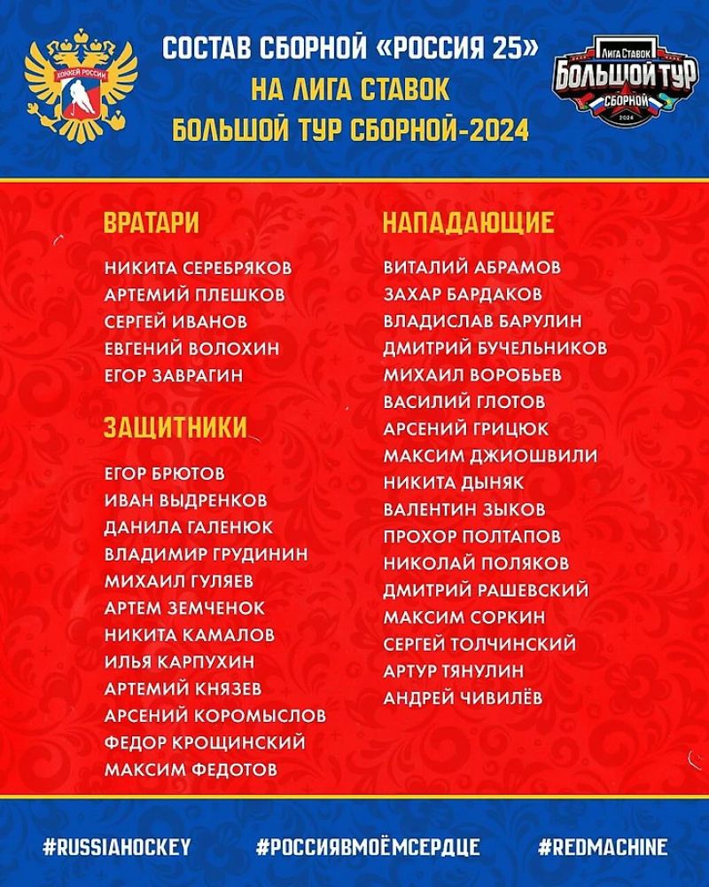 Федерация хоккея России определила состав, в котором сборная «Россия 25» проведет эти игры.