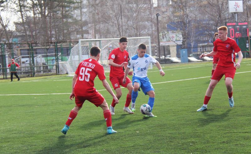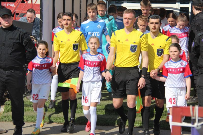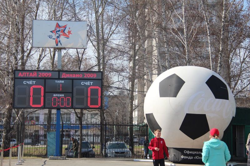 Первыми на поле вышли игроки 2009 года рождения. Мяч в игру символически ввели мастера спорта СССР, известные в крае и за его пределами футболисты Михаил Путинцев и Виктор Рыбаков. Судьбу этого поединка двух дебютантов ЮФЛ решил на 14-й минуте гол игрока «Алтая» Дмитрия Гомозова со штрафного удара. Перед этим был удалён с поля за неаккуратную атаку соперника сзади один из динамовских футболистов. Как ни старались потом динамовцы вдесятером отыграться - не получилось. Финальный свисток победители встретили неописуемым ликованием, а проигравшие неподдельным горем.