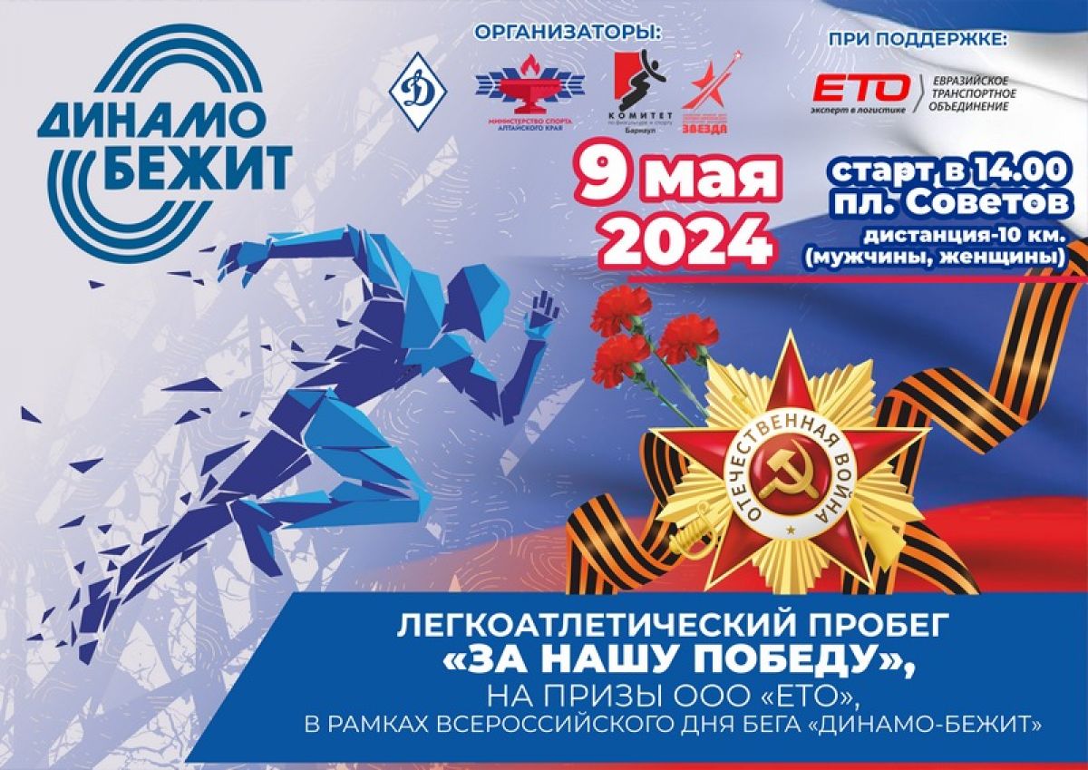 Легкоатлетический пробег «За нашу победу» на призы ООО «ЕТО» пройдёт 9 мая в рамках Всероссийского дня бега «Динамо-бежит».