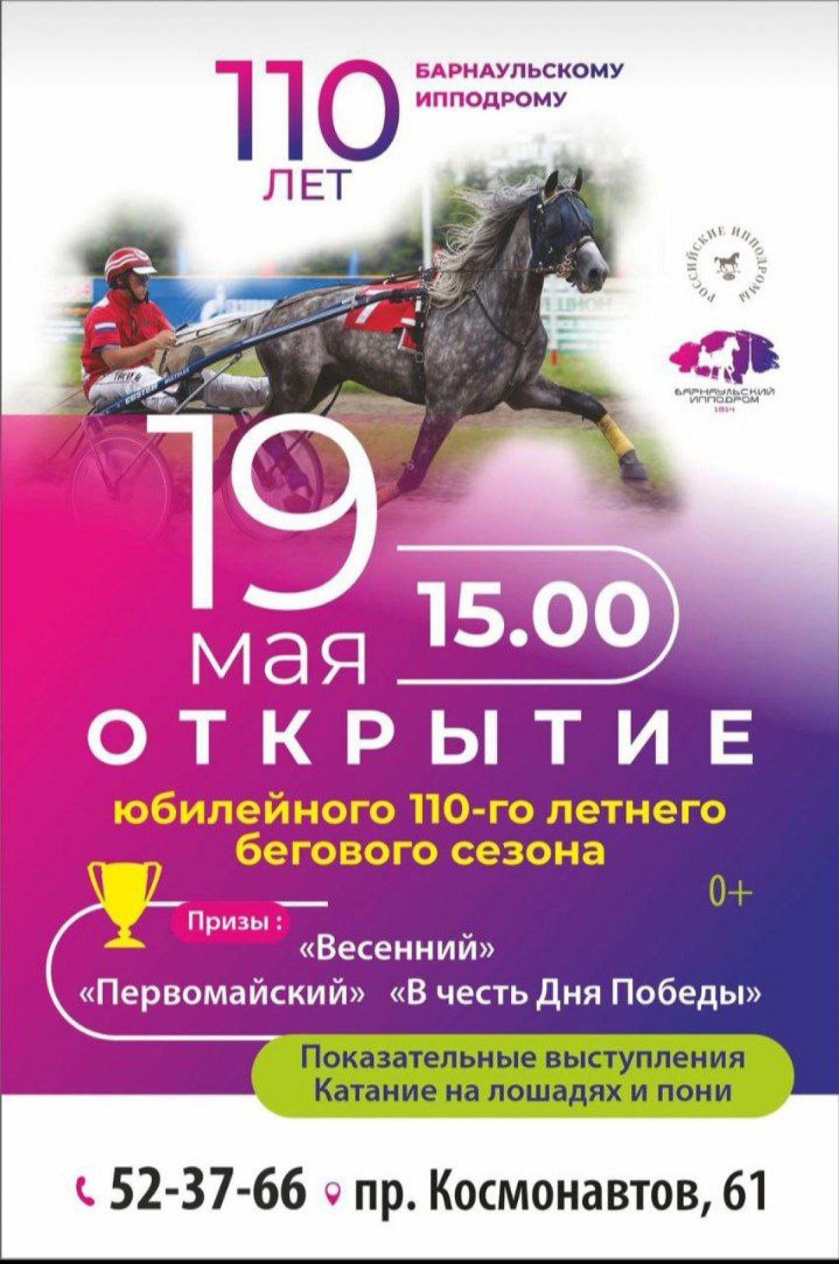 19 мая Барнаульский ипподром ждёт гостей на открытие юбилейного сезона