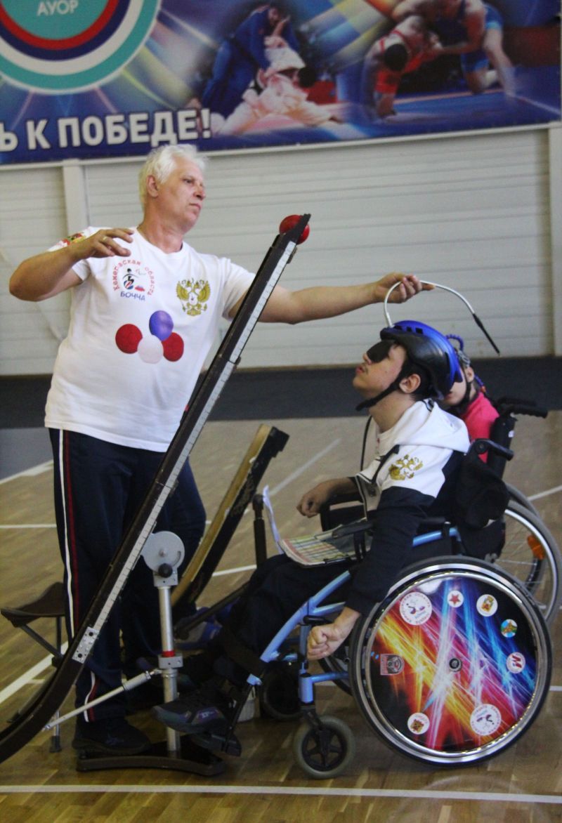 Егор выступает в классе ВС3, где требуется особое оборудование и ассистент (как правило, это родители). Руками бросить мяч спортсмен в этом классе не может физически: приходится сталкивать его в специальный жолоб кивком головы в шлеме с гибким толкателем - и тогда спортивный снаряд устремляется к цели. Смысл игры - расположить шесть мячей красного или синего цвета как можно ближе к белому шару, называемому «Джек бол».