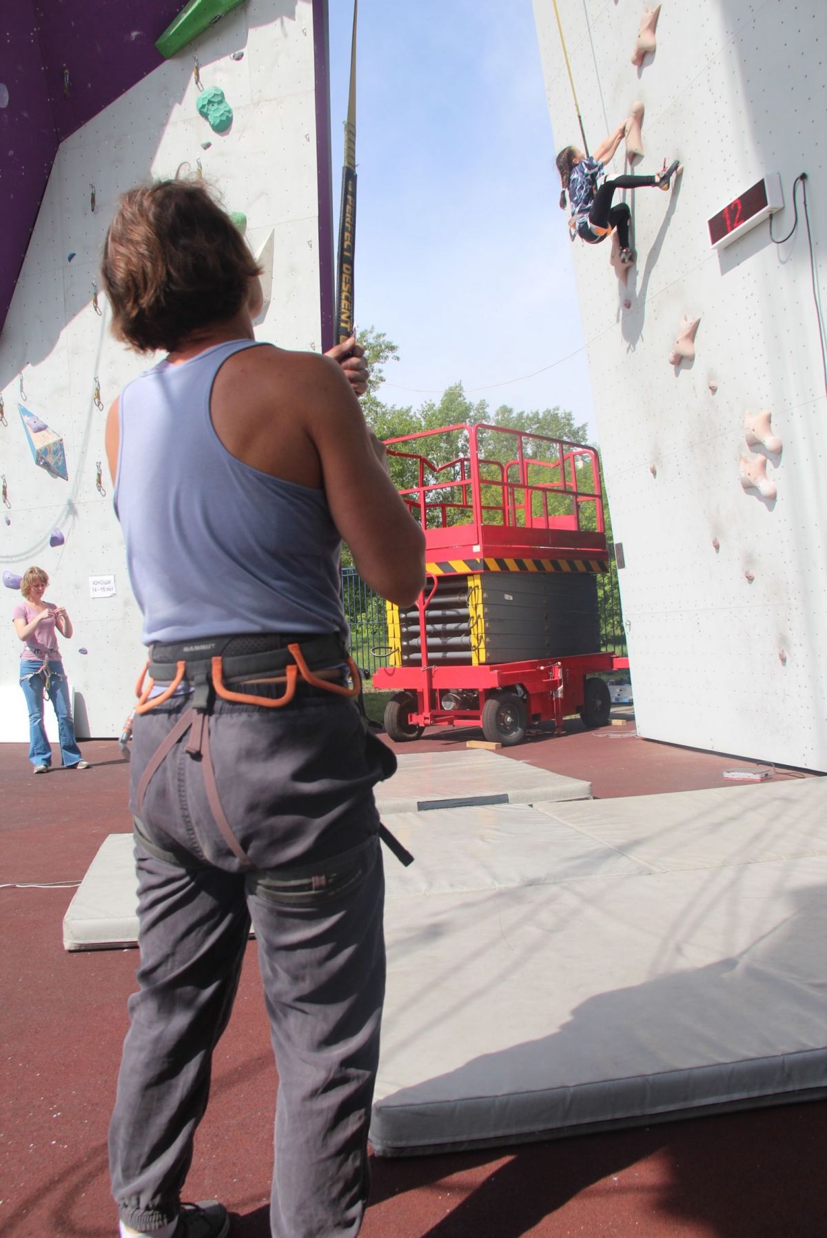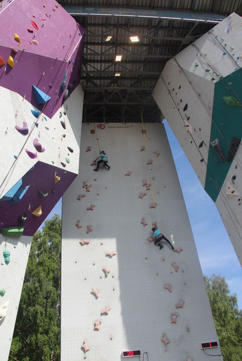 В Барнауле спортсмены соревновались в двух из этих дисциплин - 25 мая взбирались на высоту 15,5 метра на трудность, а 26 мая - на скорость. Это были первые в этом году соревнования на большом скалодроме, зимой все скалолазы - и в Барнауле, и в Рубцовске, и в Бийске (именно в этих городах развивается в нашем крае этот вид спорта) занимались в помещении на куда более скромной высоте, на боулдеринговых скалодромах от 4 до 6 метров. Бийчане накануне соревнований специально приезжали потренироваться на «Лабиринт», так как после зимних занятий некоторым спортсменам требуется время для адаптации, чтобы убрать страх высоты. Впрочем, те же барнаульцы были в этот раз не в очень-то большом выигрыше. Из-за холодной погоды они начали тренироваться на «Лабиринте» только в конце апреля.