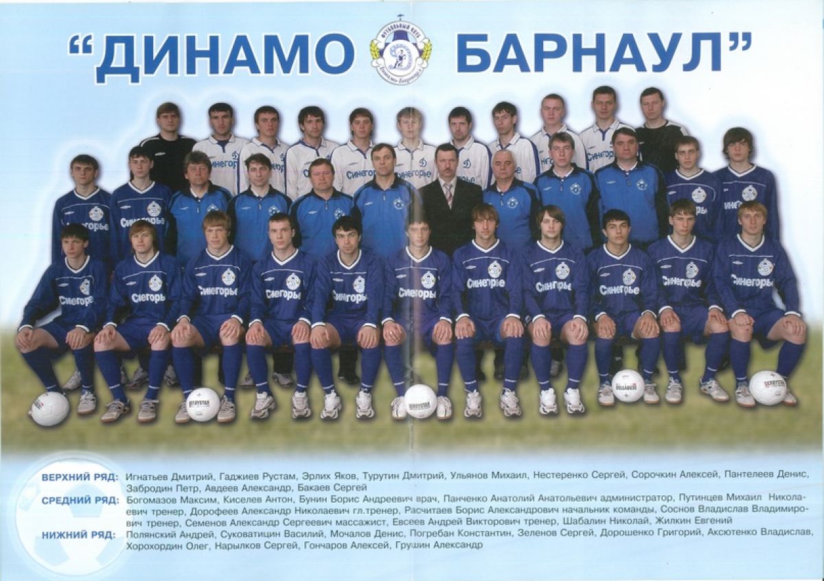 За барнаульское «Динамо» в этом сезоне играли: вратари - Сергей Бакаев - 22 игры, Дмитрий Игнатьев - 14; защитники - Александр Авдеев - 35 (2 гола), Александр Грушин - 34, Денис Пантелеев - 30, Сергей Нестеренко - 25 (3), Рустам Гаджиев - 28 (1); полузащитники - Сергей Зеленов - 33 (2), Николай Шабалин - 35 (5), Дмитрий Турутин - 32 (5), Константин Погребан - 32 (1), Сергей Нарылков - 32 (3), Антон Киселев - 24 (2), Михаил Ульянов - 16, Дмитрий Ропельт - 4, Денис Мочалов - 3, Алексей Гончаров - 5; нападающие - Алексей Сорочкин - 33 (13), Андрей Полянский - 32 (5), Григорий Дорошенко - 23 (2), Владислав Аксютенко - 24 (6), Яков Эрлих - 14, Максим Богомазов - 7, Евгений Жилкин - 10. Один гол в свои ворота забил защитник «Амура» Максим Охрименко (в матче 24 августа - 4:0 в Барнауле). Главный тренер - мастер спорта СССР Александр Николаевич Дорофеев, тренеры - Владислав Владимирович Соснов, мастер спорта СССР Михаил Николаевич Путинцев, Алексей Леонидович Липатников, Андрей Викторович Евсеев.