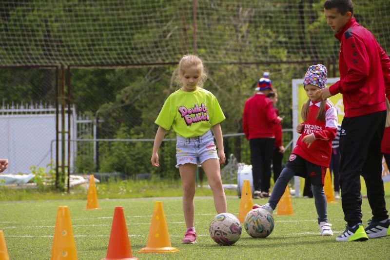 На стадионе СШОР Алексея Смертина прошли праздничные спортивные мероприятия - фестиваль футбола для девочек «Мы в игре. Лето с Фиксиками» и турнир «Большие звёзды светят малым» в дивизионе Смертиных.