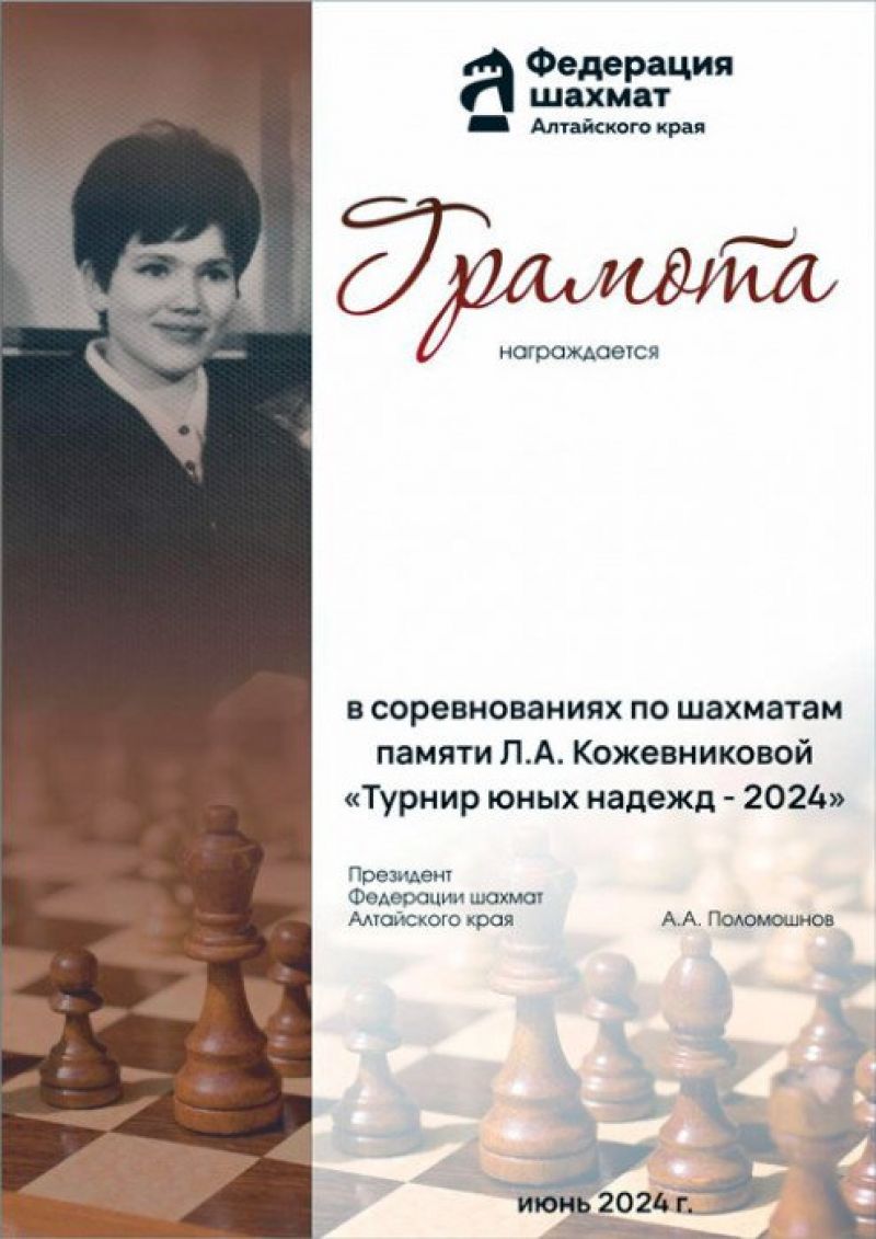 Чтобы он стал краевым, помимо хороших призов, в этом турнире юные таланты не из Барнаула получают финансирование проживания. И мне кажется, что через этот мемориал реально проходят те, кто в будущем станет определять шахматное развитие нашего региона.