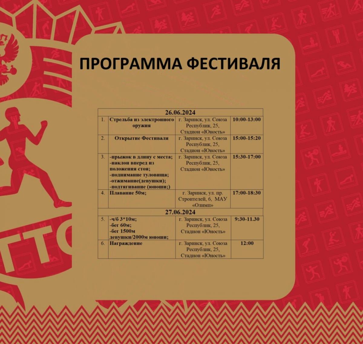 26−27 июня. Заринск. Стадион «Юность». Краевой финал летнего фестиваля ГТО среди школьных команд