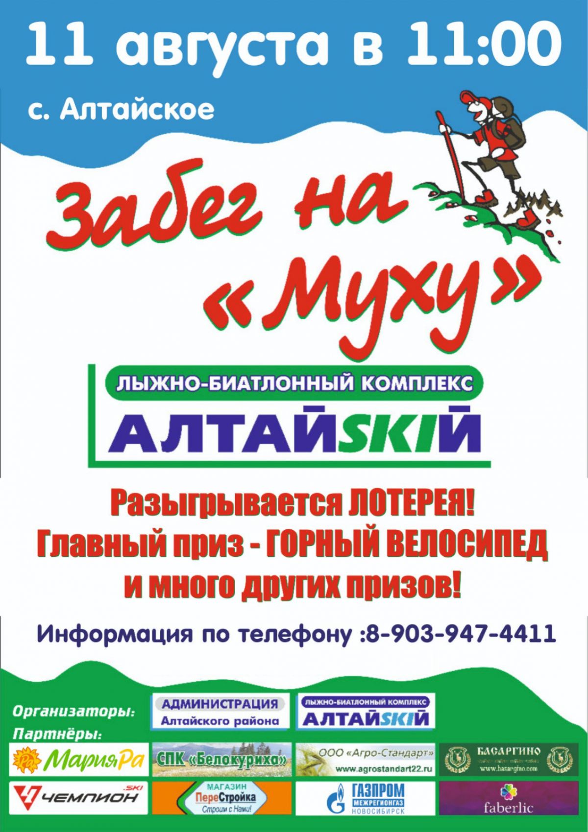 В воскресенье, 11 августа в 11:00 в райцентре Алтайское на стартовой площадке лыжно-биатлонного комплекса «АлтайSKIЙ" в шестой раз состоится массовый легкоатлетический забег на вершину горы Муха.