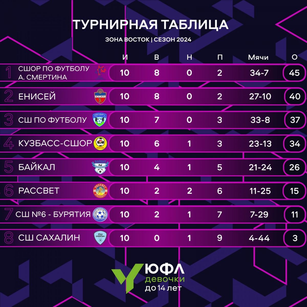 В итоге наши девчонки под руководством тренера Оксаны Жбанниковой выиграли в Красноярске два матча (разгромили местный «Рассвет» 4:0 и обыграли команду «Кузбасс-СШОР» - 2:0), но уступили со счётом 0:1 красноярскому «Енисею».