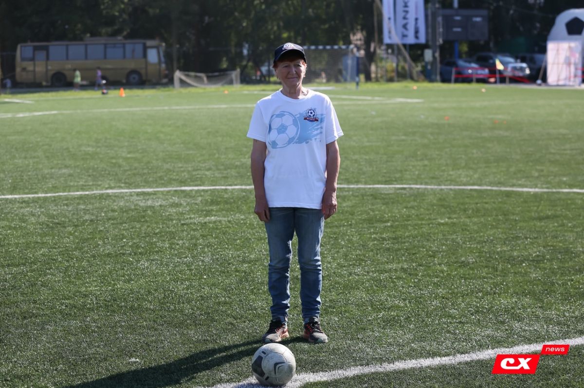 А первый символический удар по мячу выполнила Антонина Васильевна - мама Алексея Геннадьевича.