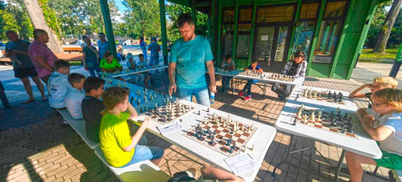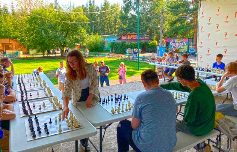 В парке «Лесная сказка» играла женский мастер ФИДЕ Виктория Лоскутова. С ней не сразились 16 юных шахматистов и один взрослый-любитель.