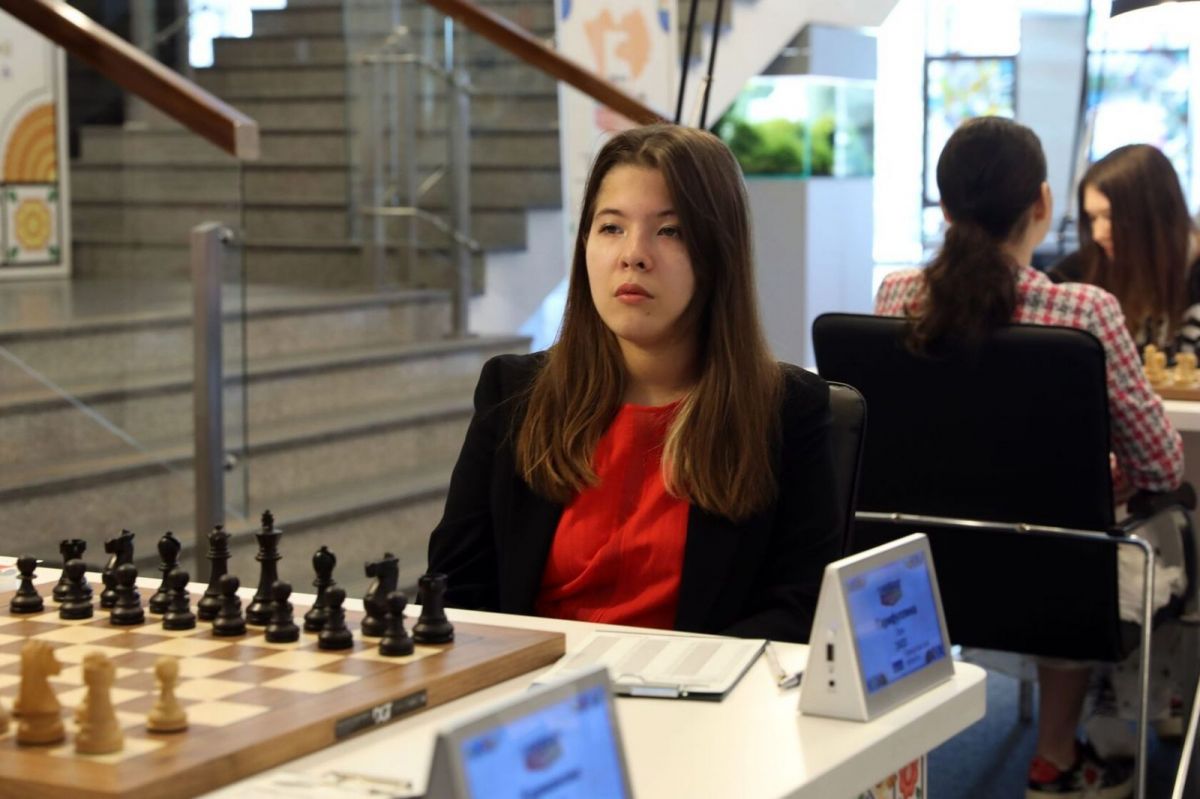 Лея Гарифуллина черным цветом переиграла Ольгу Карманову в окончании с ладьями и конями: екатеринбургская спортсменка добилась пространственного перевеса, далеко надвинула свои центральные пешки, постепенно довела связанные проходные до третьей горизонтали и выиграла.