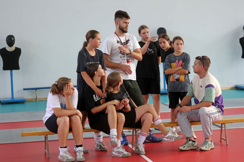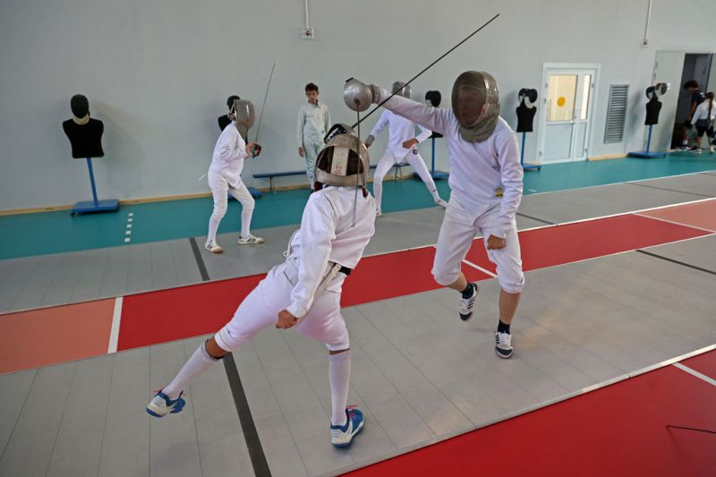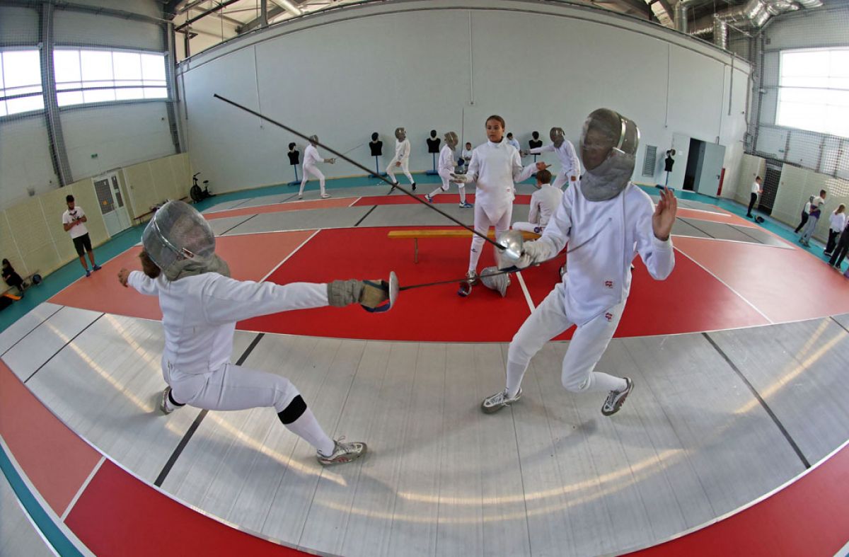Спортсмены обживают свой новый дом. Еще составляется удобное для всех расписание, сейчас одна из первостепенных задач - натянуть заградительную сетку, чтобы волейболисты и фехтовальщики не доставляли друг другу неудобств.