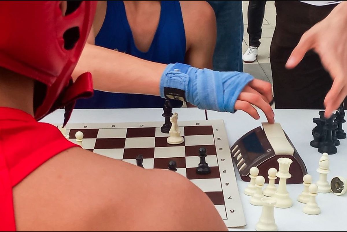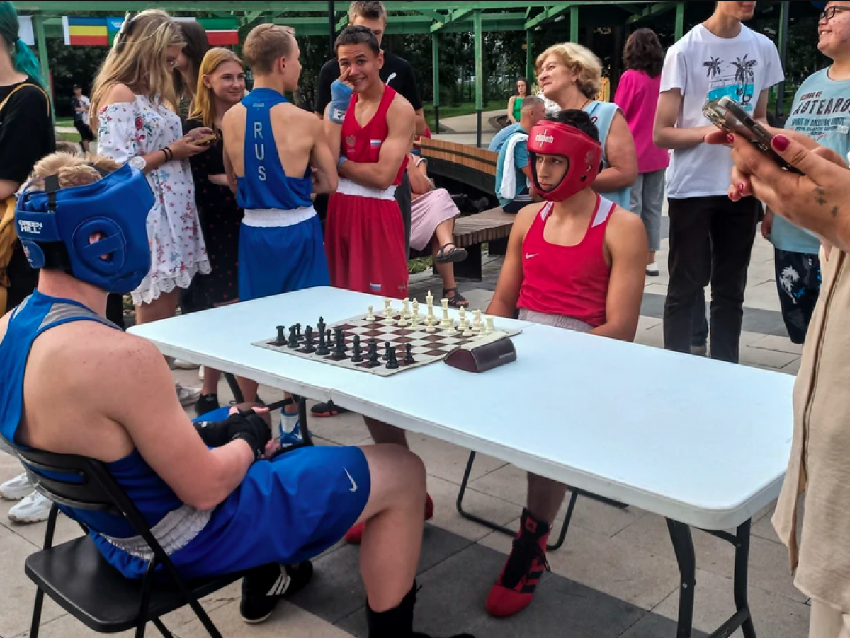 Посетители парка «Изумрудный», решившие скрасить вечер возле пруда или позаниматься на местной спортивной площадке, 20 августа стали свидетелями необычного зрелища. На установленном посреди парка ринге сражались пары боксёров, а после нескольких минут активной работы они пересаживались за шахматные доски в попытке поставить сопернику мат. Картина, которая для неподготовленного зрителя выглядит странно, для шахбоксёров - привычное дело.