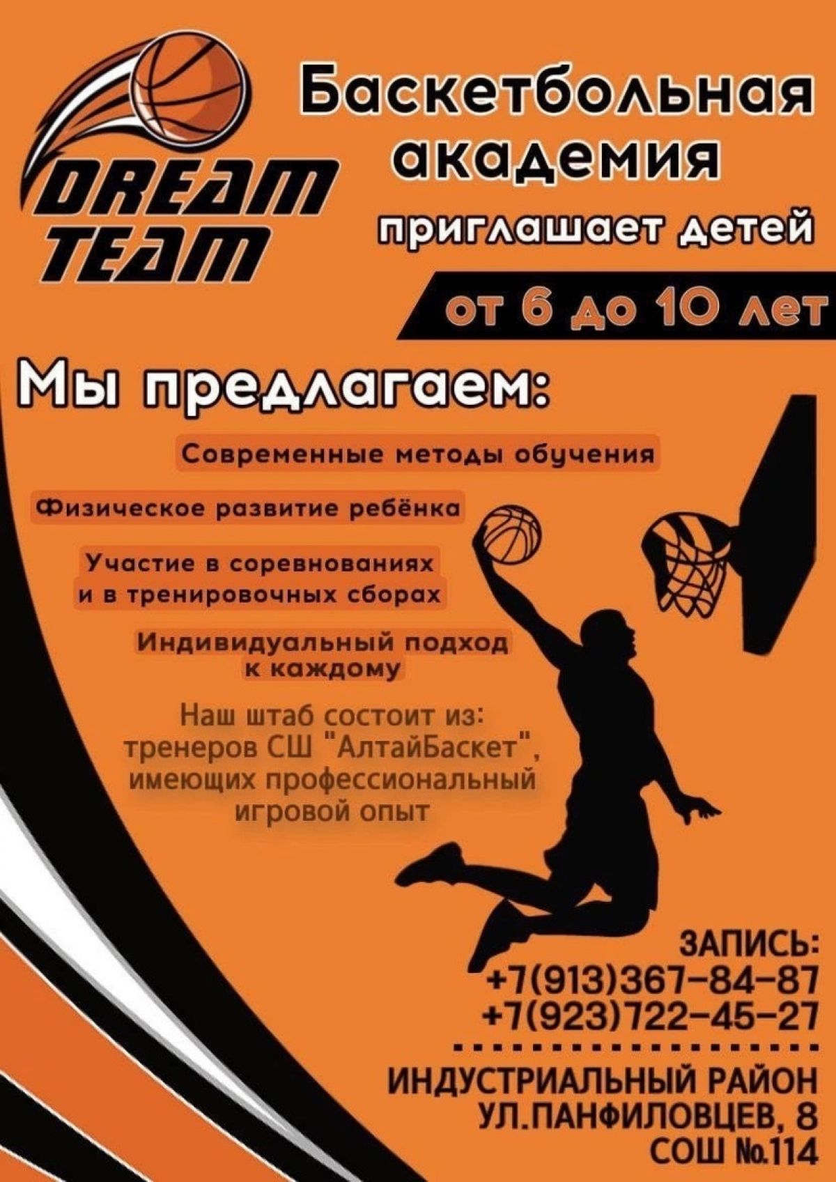В Барнауле появилась новая Академия баскетбола «DreamTeam». Сейчас проходит набор детей от 6 до 10 лет.