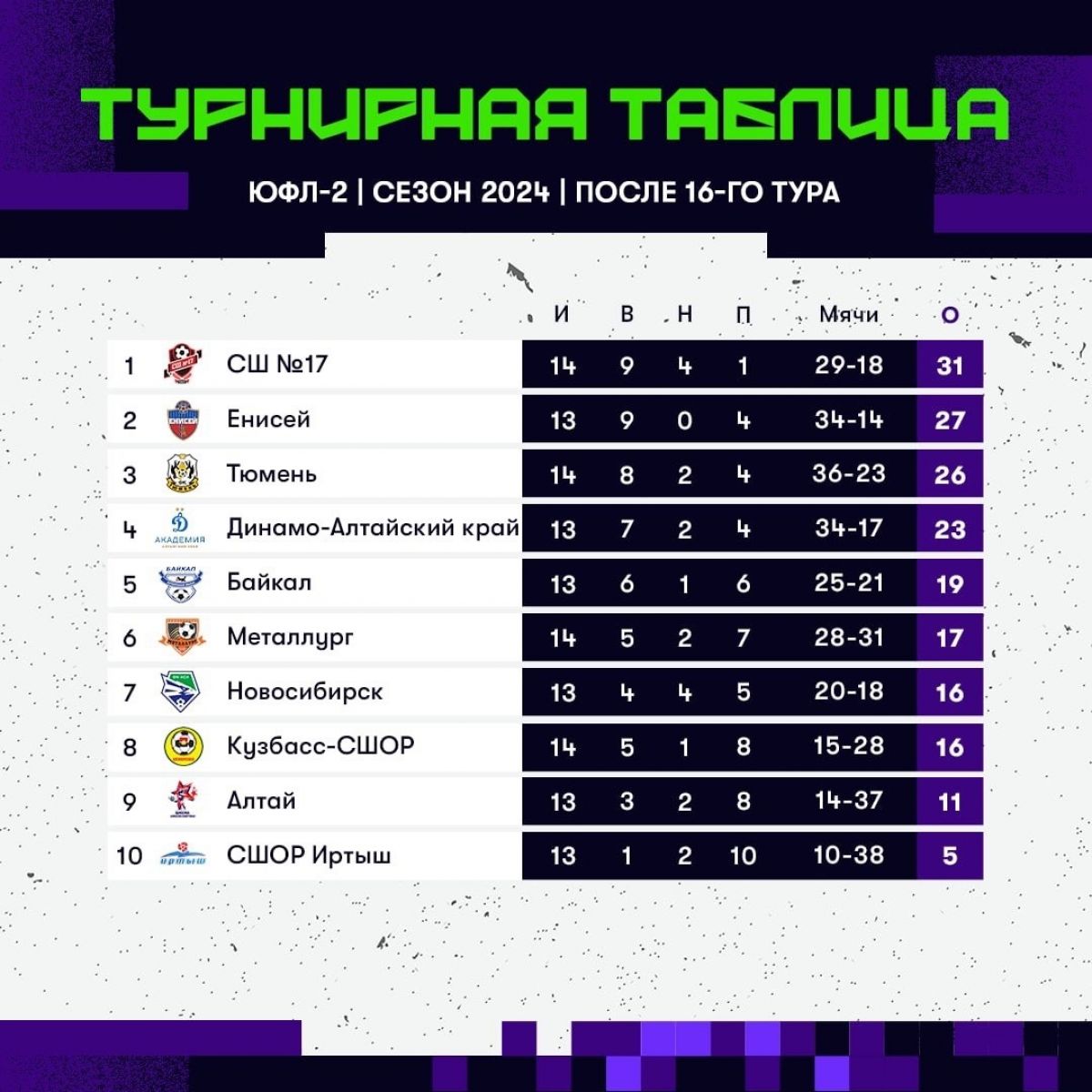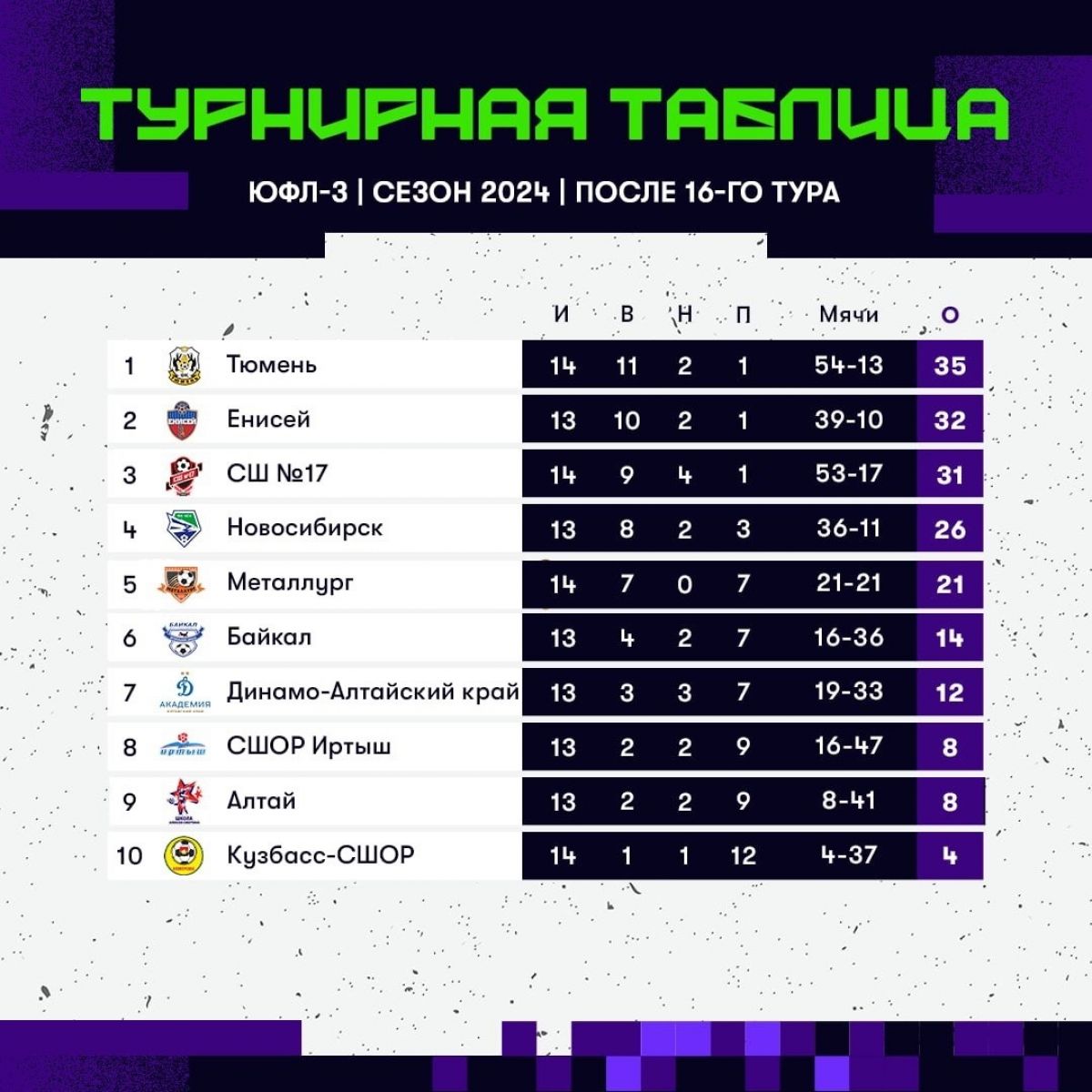 23−24 августа прошли игры 16-го тура Юношеской футбольной лиги в Сибирском федеральном округе.
