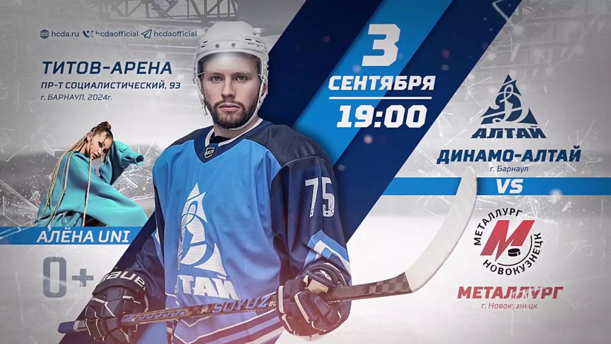 Первый домашний матч ХК «Динамо-Алтай» — уже совсем скоро. 3 сентября в 19:00 в «Титов-Арене» наша команда принимает новокузнецкий «Металлург»