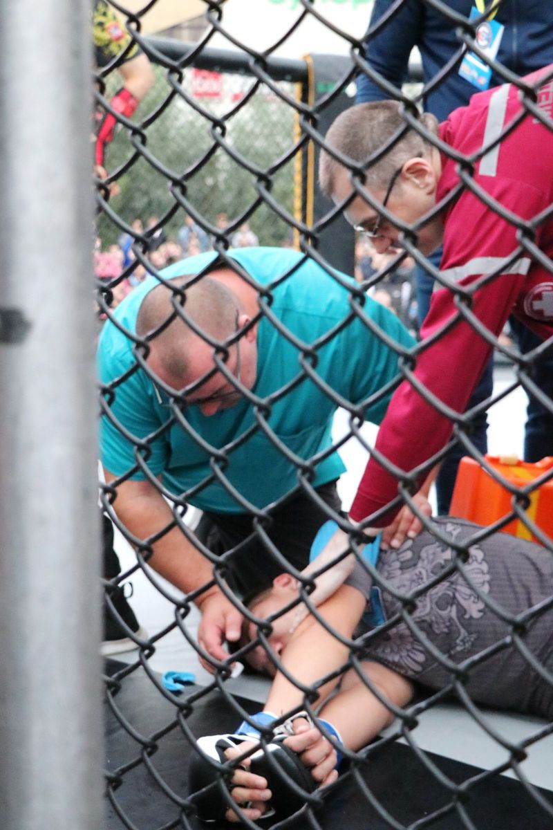 Пытавшийся было накрапывать дождик не распугал публику, и, к счастью, не перешёл в ливень. Но, необходимо отметить, что порою скользкое от осадков покрытие октагона вносило свои коррективы в ход поединков - боец мог доминировать, а затем вдруг оказаться в партере внизу и проиграть…