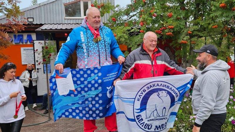 Алтайские моржи с успехом выступили на городском открытом фестивале по зимнему плаванию «Енисеюшка-2024» в Красноярске. Соревнования прошли 7−8 сентября в воде температурой от 8 до 12 градусов. Температура воздуха была ненамного выше - от 10 до 15 градусов.