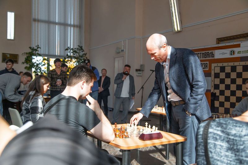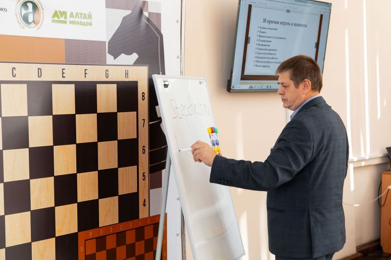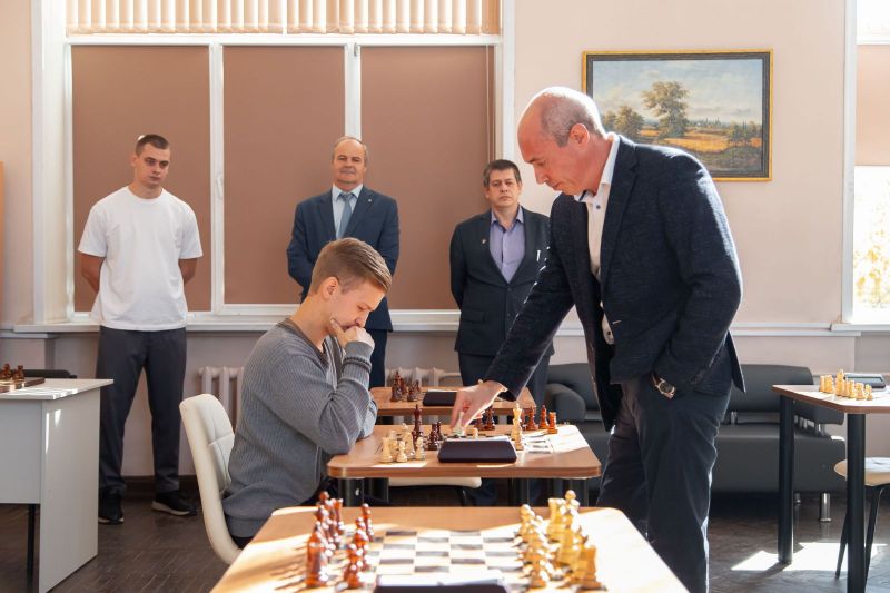 Далее президент Федерации шахмат Алтайского края Артем Поломошнов провел сеанс одновременной игры со студентами АГАУ на 6 досках.